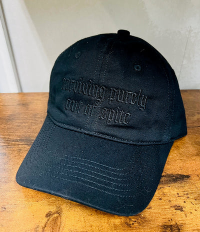 Black on Black - Surviving Purely out of Spite - Embroidered Dad Hat - READY TO SHIP