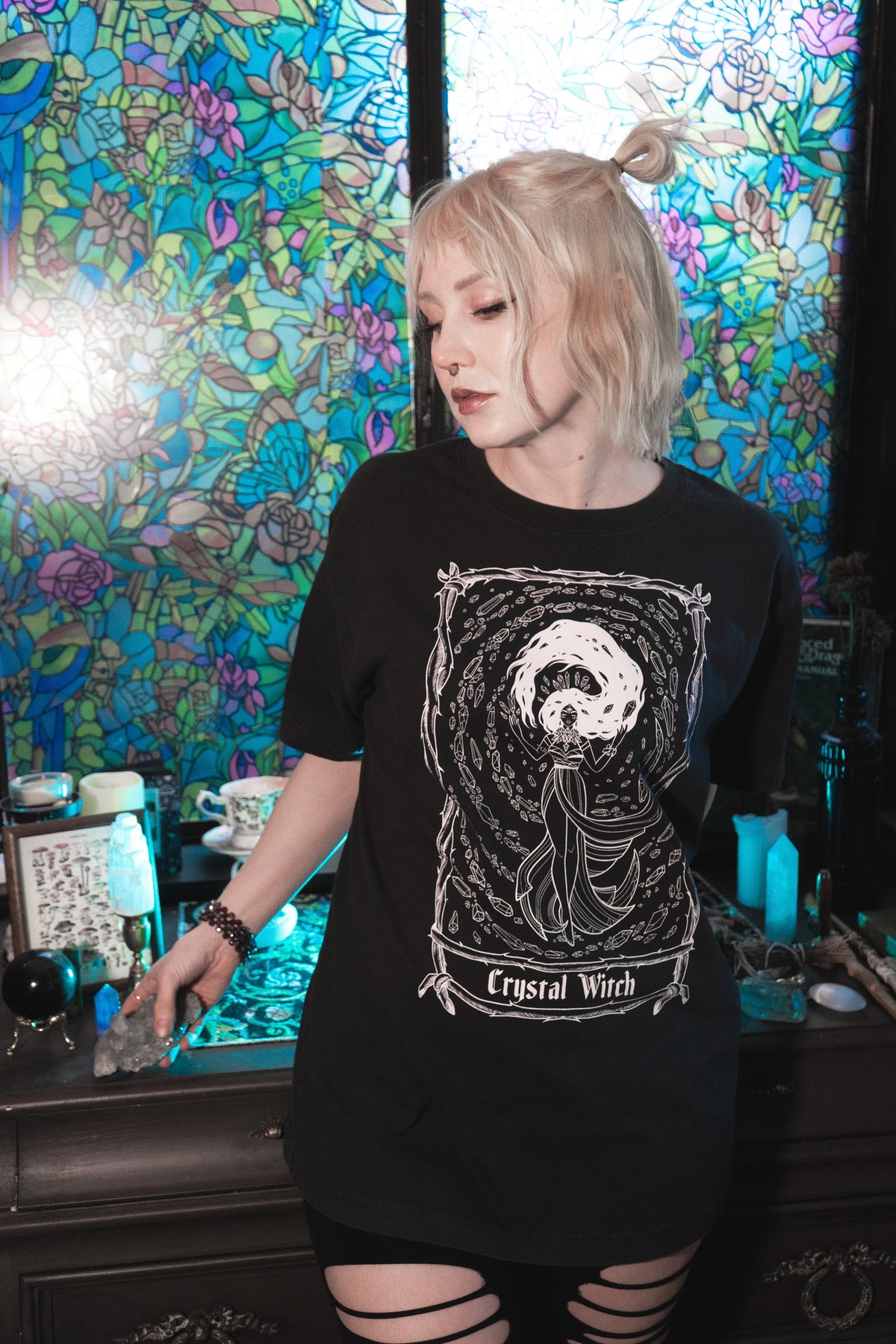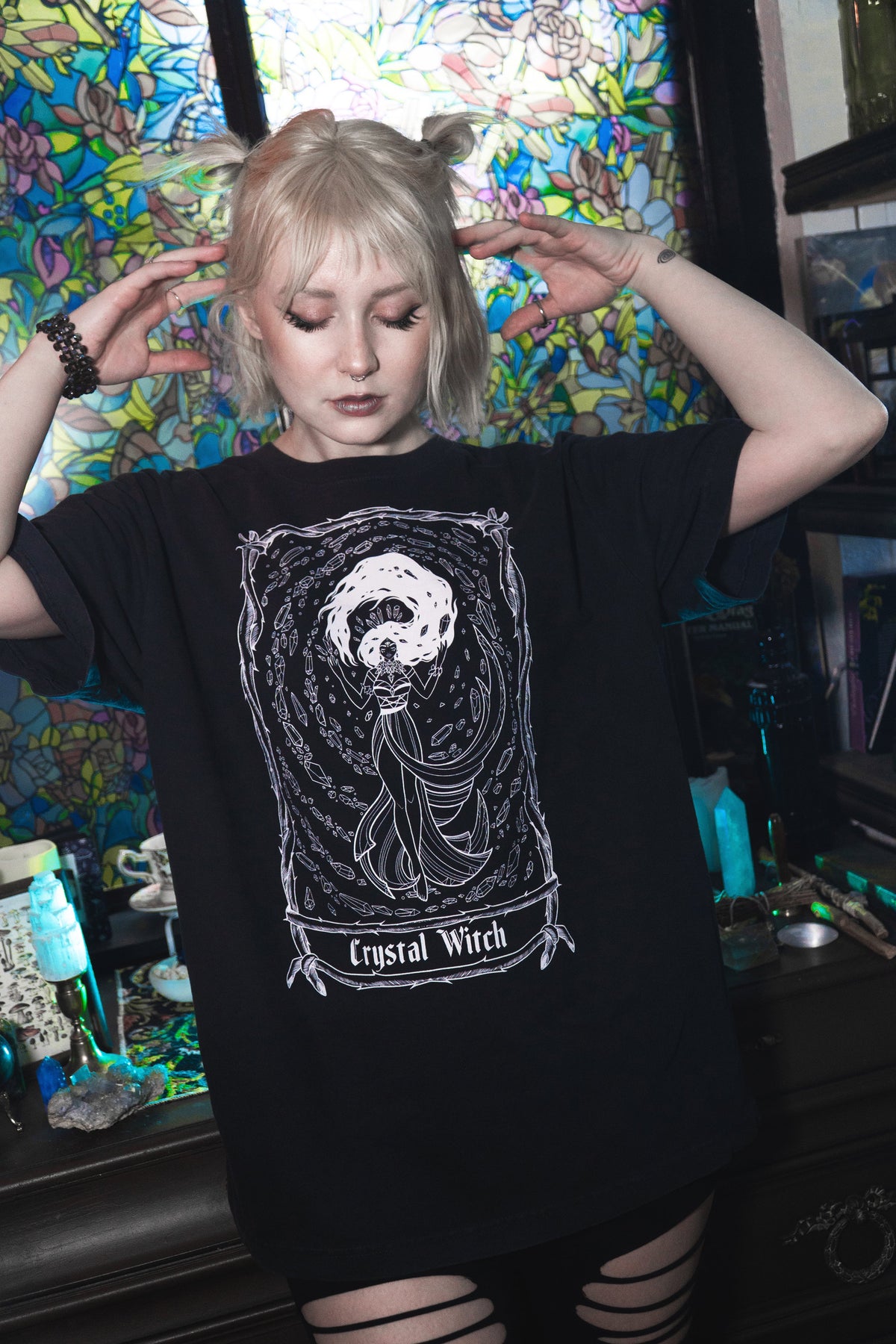 Inspired by the Crystal Witch clarity, intuition, and charged energy this tee is for anyone drawn to crystals, intention setting, and a little quiet power in their wardrobe.