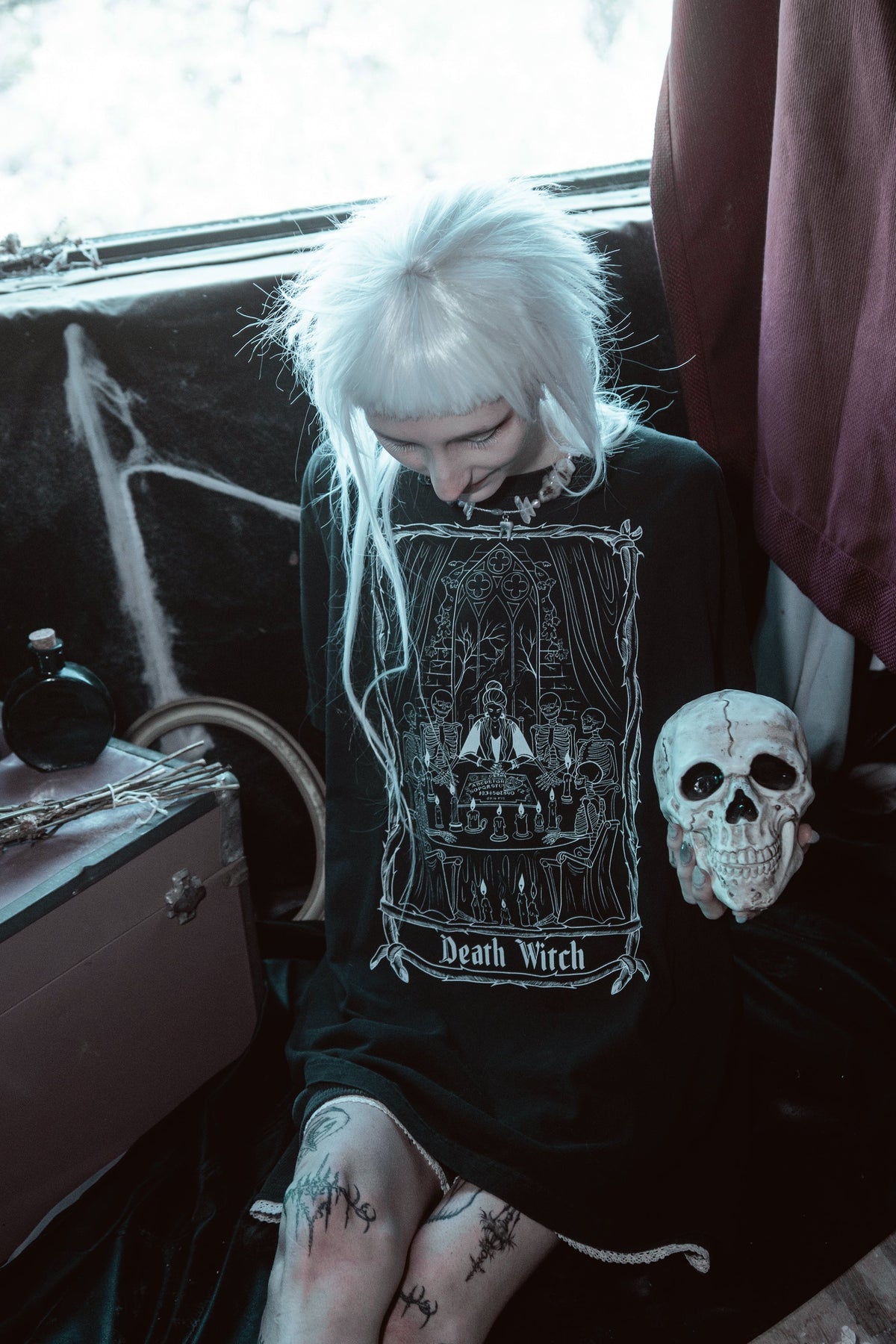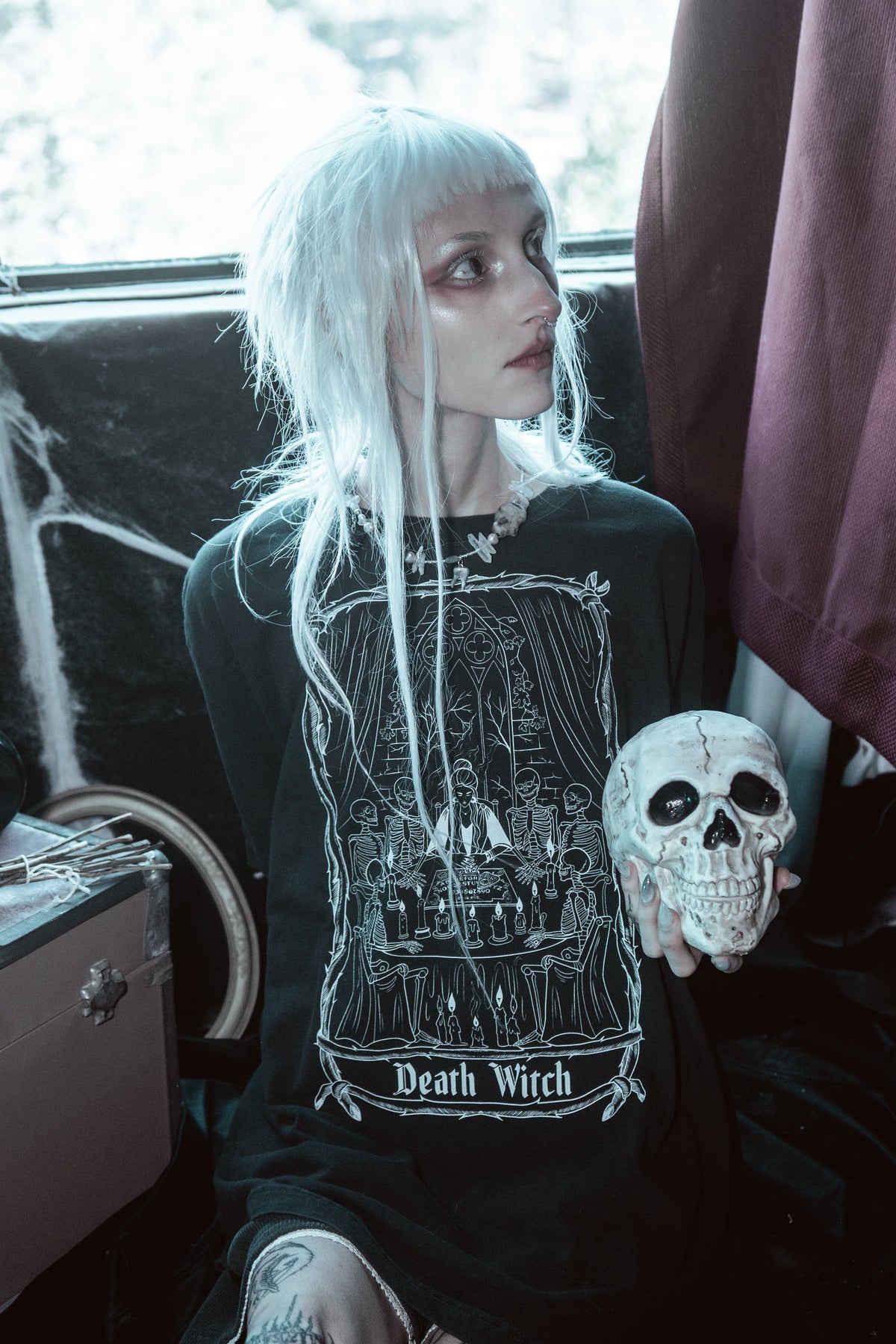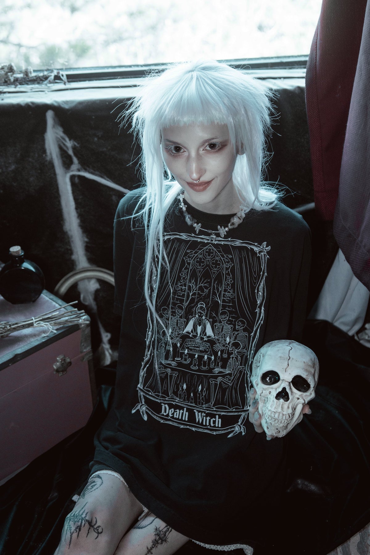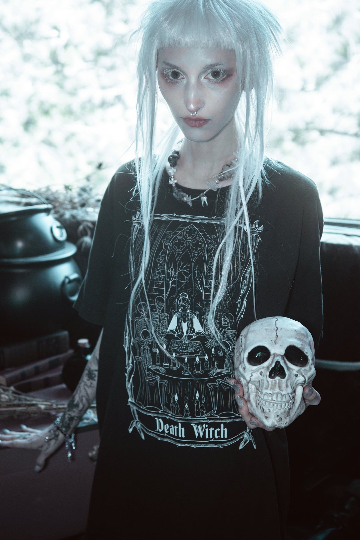 The Death Witch Tee is an easy, everyday tee with a relaxed fit and worn in feel. Made from soft 100% cotton, it’s comfortable, breathable, and designed for repeat wear. Inspired by the Death Witch a figure of transition, depth, and quiet acceptance this tee is made for those who move through endings with intention.