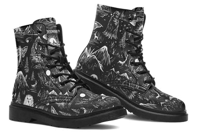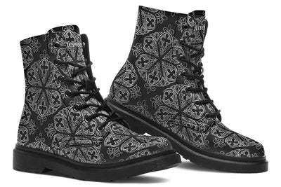 Vegan Ankle Boots - Gothic Ornaments B/W