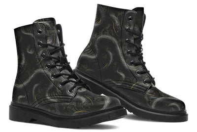Vegan Ankle Boots - Gothic Ornaments - Black on Black