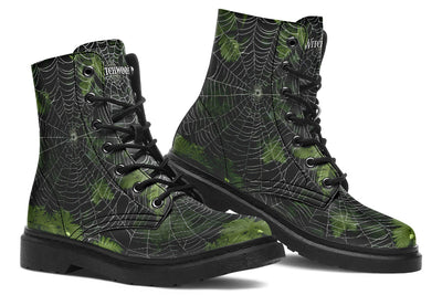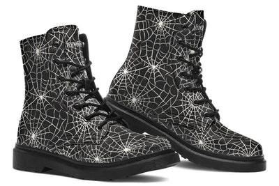 Vegan Ankle Boots - Spider Webs - Black on Black