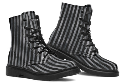 Vegan Ankle Boots - Distressed Stripes - Charcoal/Black