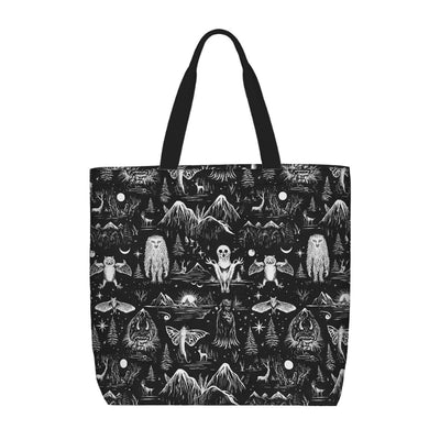 Printed Beach Bag / XL Tote Bag - B/W Cryptids