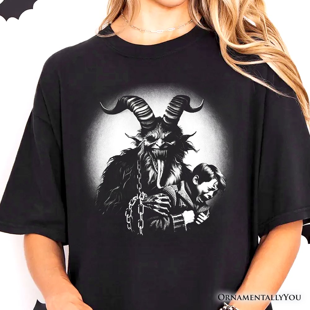 Embrace the dark side of Halloween with this chilling Krampus t-shirt, featuring a sinister horror villain design perfect for fans of creepy folklore and gothic style. 🖤👹 Crafted for comfort with soft, breathable fabric, this spooky tee is ideal for haunted parties, Halloween nights, or adding a bold statement to your everyday wardrobe. Pair it with jeans or layered under jackets to turn heads and spark conversations. Perfect for horror enthusiasts, gothic collectors, and anyone seeking a unique, eye-catching Halloween outfit. 🎃🩸