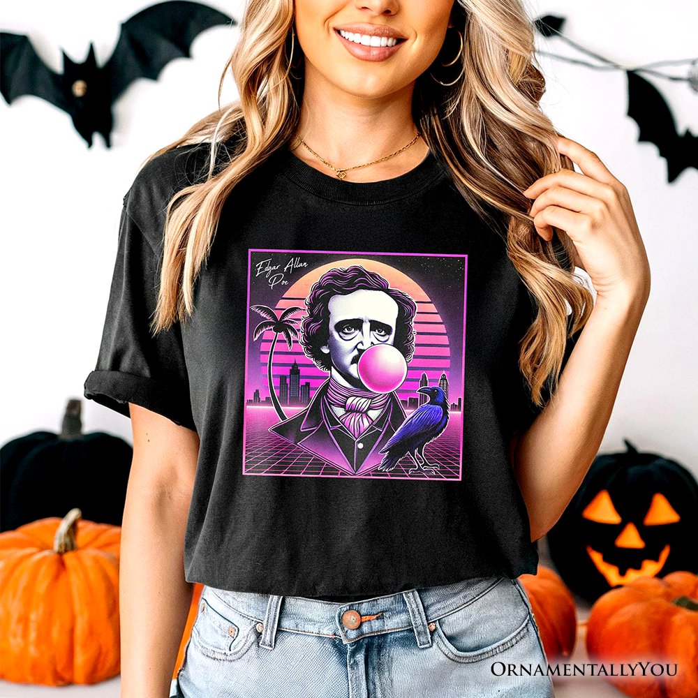 Step into a spine-chilling time warp with this retro horror tee featuring the legendary Edgar Allan Poe, reimagined in vivid synthwave style. Bursting with neon purples, eerie pinks, and electric blues, this shirt blends gothic mystery with a vaporwave aesthetic that screams 1980s nostalgia. Perfect for Halloween parties, horror fans, or everyday wear with a twist, this design captures the eerie essence of Poe through a psychedelic lens. Whether you're a fan of vintage horror, retro fashion, or the dark romanticism of literary icons, this tee is your ultimate statement piece. 👻🕶️🌙💀