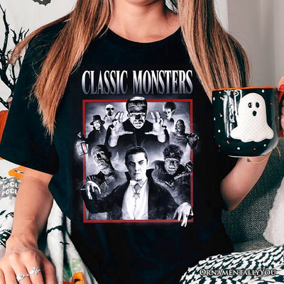 Classic Monsters Black and White T-Shirt, Retro Vintage Horror Tee