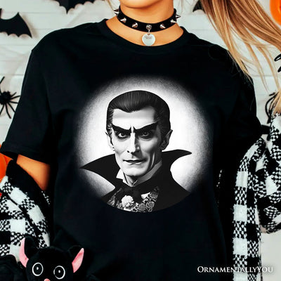 Dracula Spooky Portrait T-Shirt, Horror Villain Theme Halloween Tee