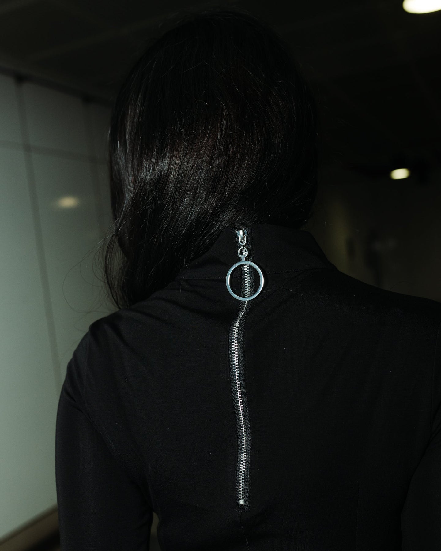 Each bottom cut out and opening at chest are accented with zipper teeth. The material contains a decent amount of stretch and hugs your curves in all the right places.