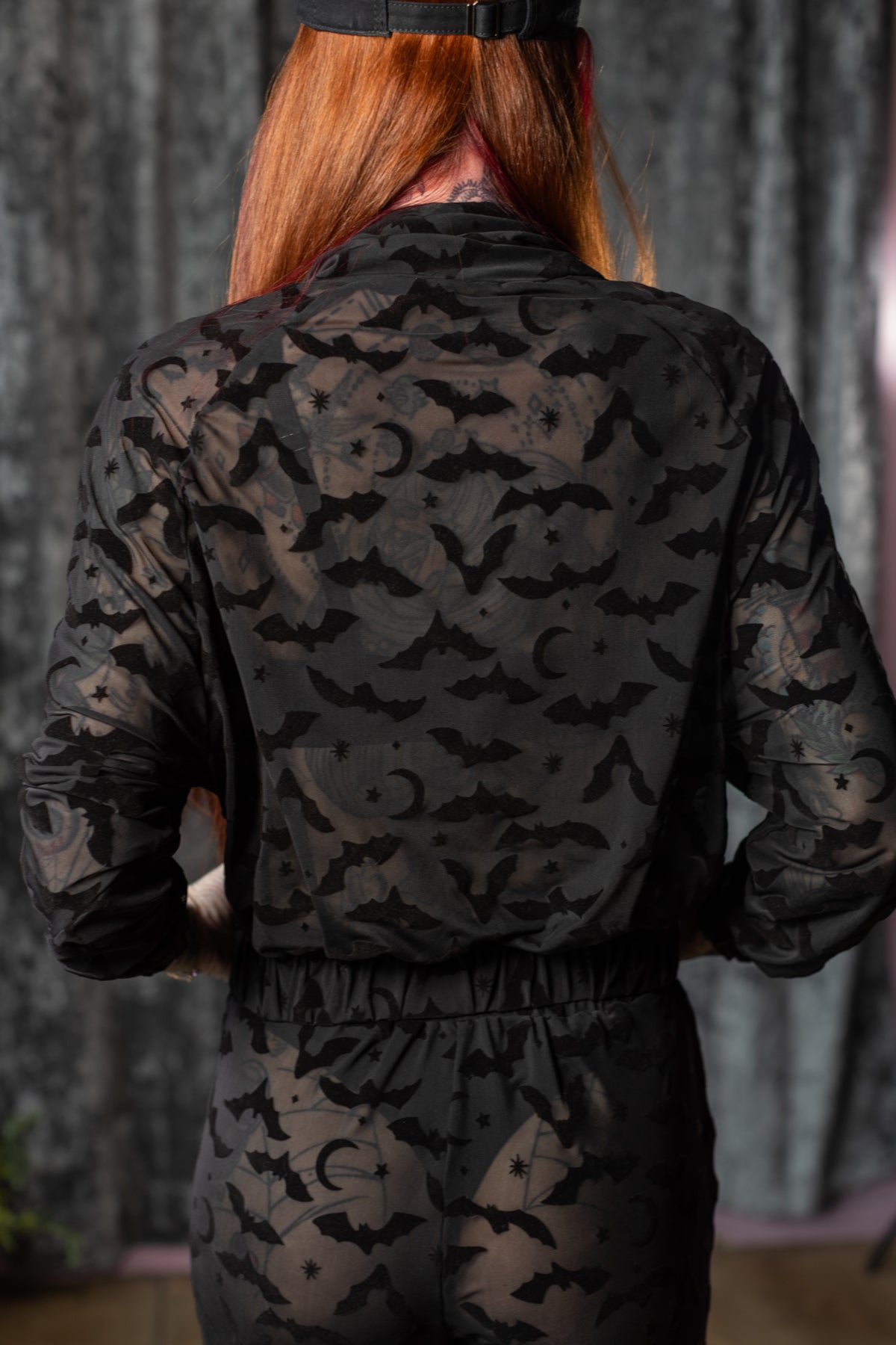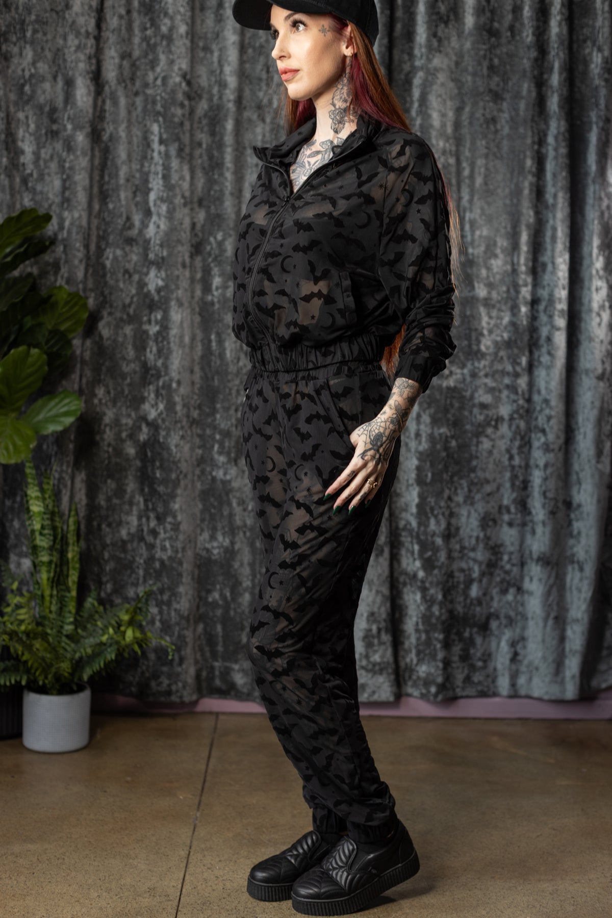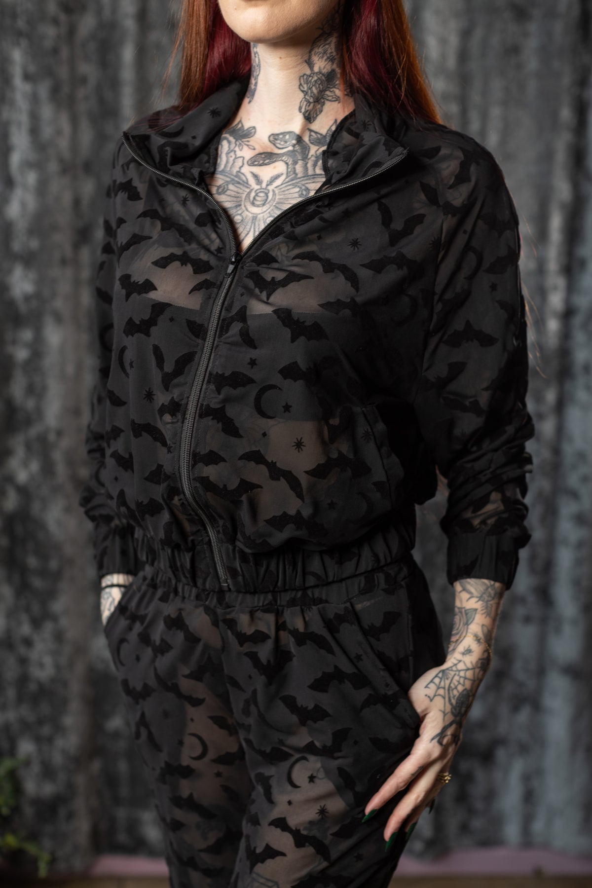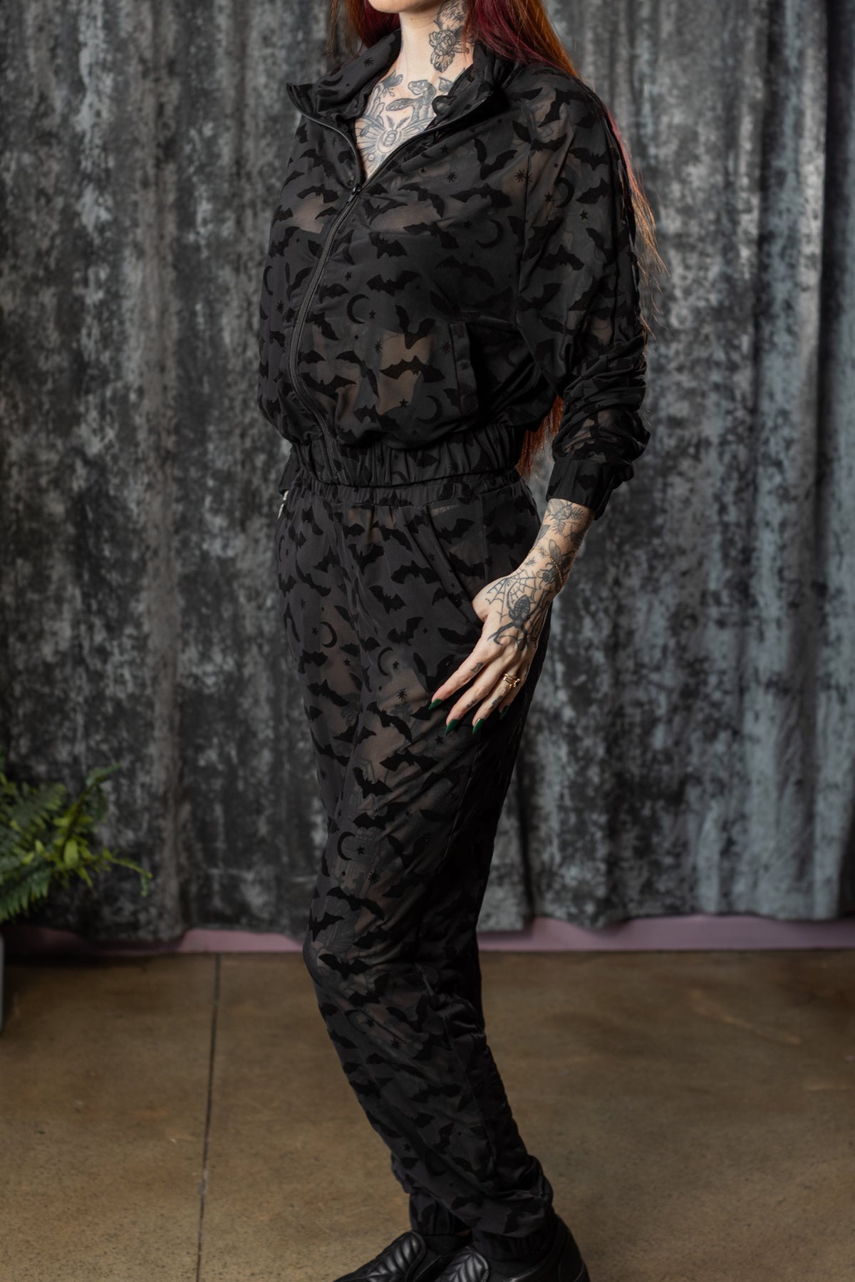 The SINFUL Track Suit Set - BATS - Sheer Velvet Flocked Bat Track Jacket & Jogger Set - PRE-ORDER